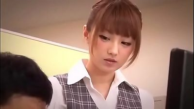 chinese Miu Akino gargles hard schlongs and enjoys a threesome.