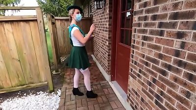 milf with a spectacular white bootie changes pads in the park outside